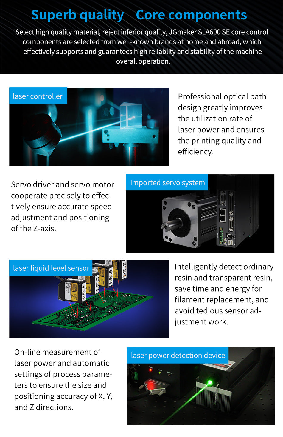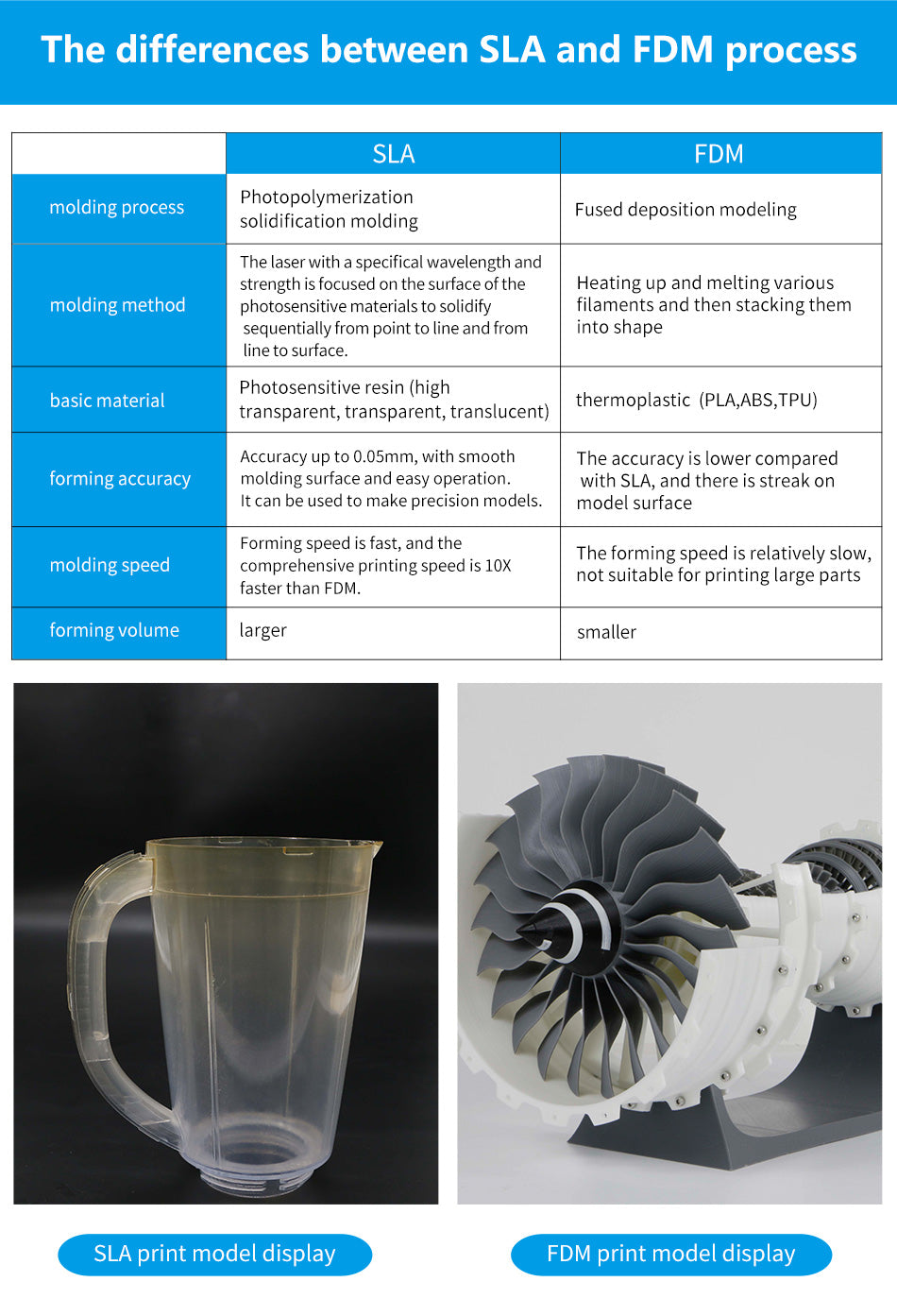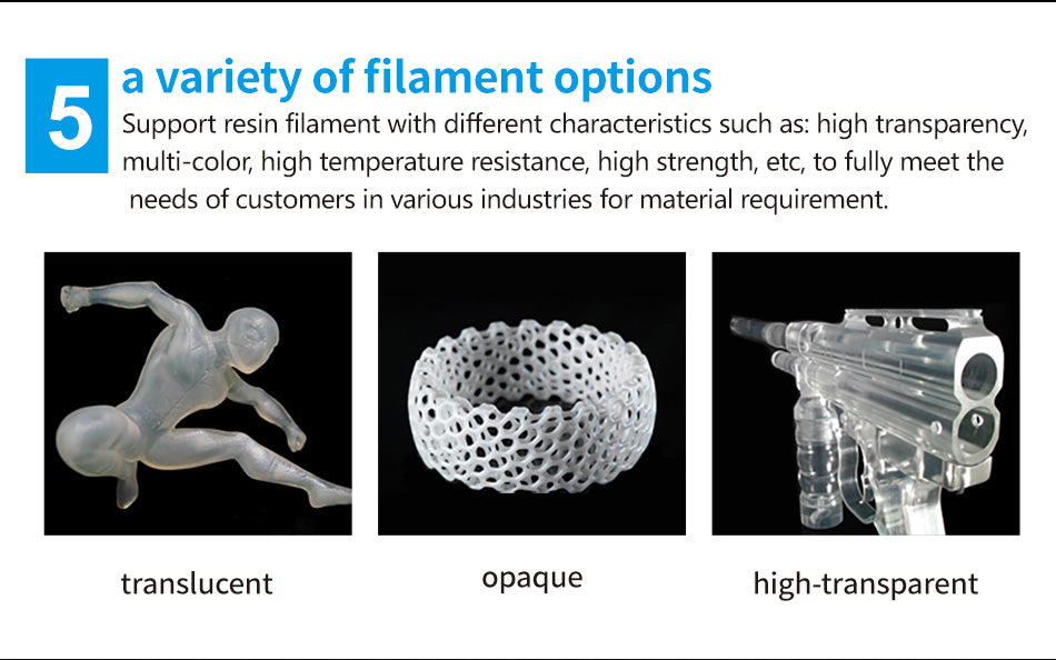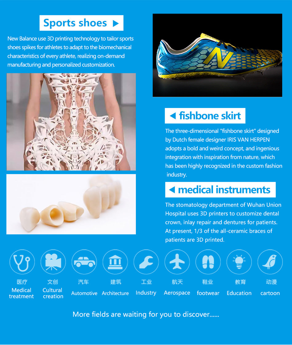 Large build size 600*600*410mm and high precision level 0.05 mm, especially used for quick prototyping of various complex precise parts and accessories used in heavy industies, such as automobile, avaition, medical orthopaedics and machinery manufacturing.
