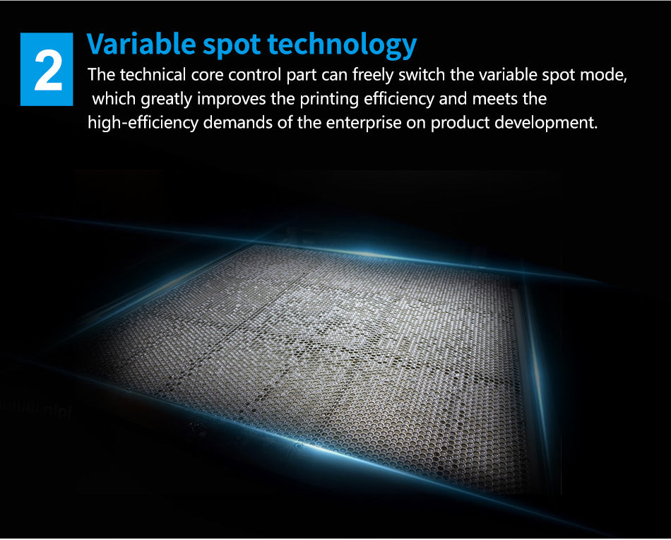 Variable spot technology: Patent technology core controls element. Freely switching spot mode, greatly improve the printing efficiency, and meet the high efficiency requirements of product development.